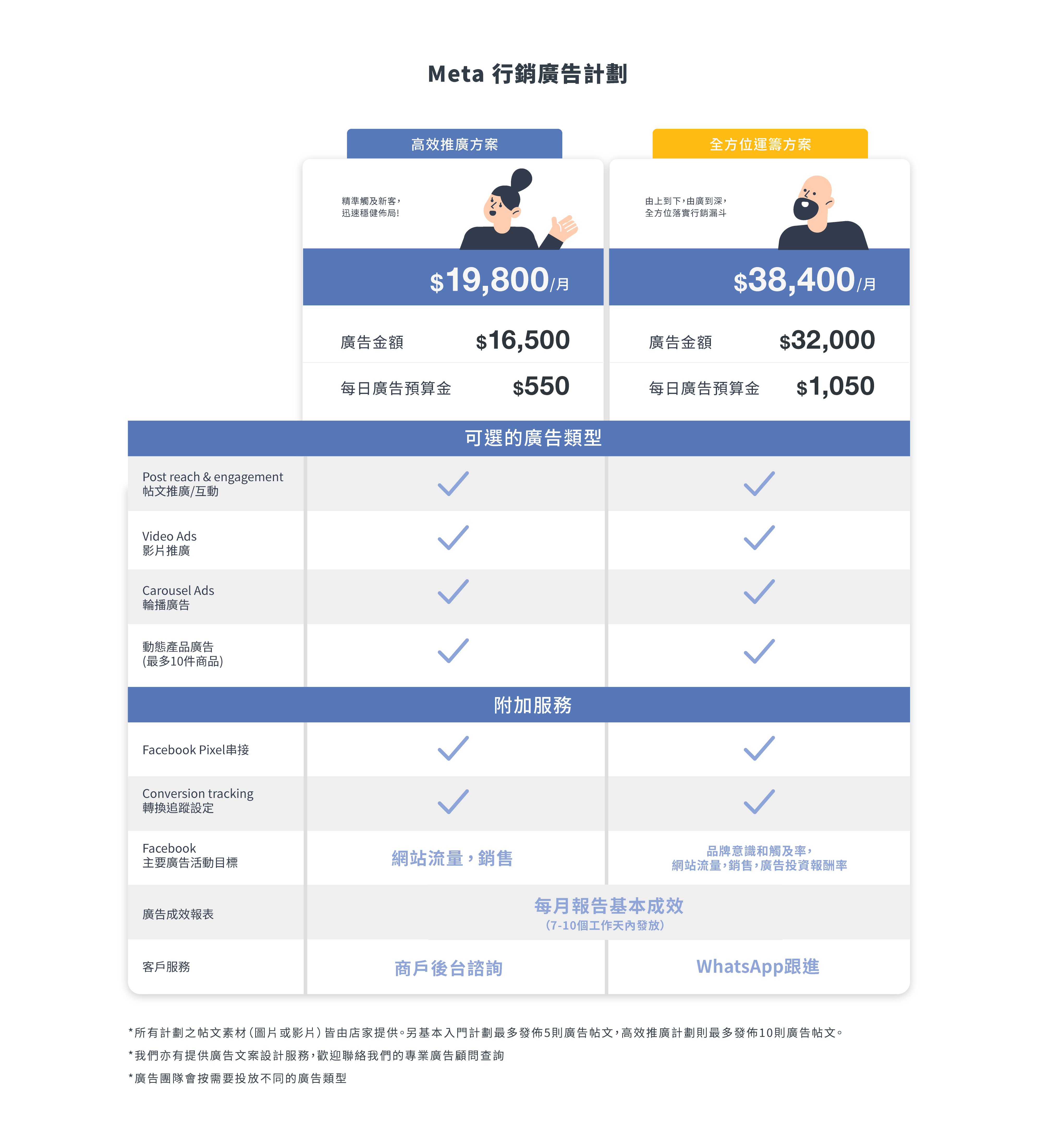 計畫內容並不包含廣告素材設計,若您有額外需求由SHOPLINE團隊協助您製作廣告圖片/影音等素材,我們將另外報價計算。